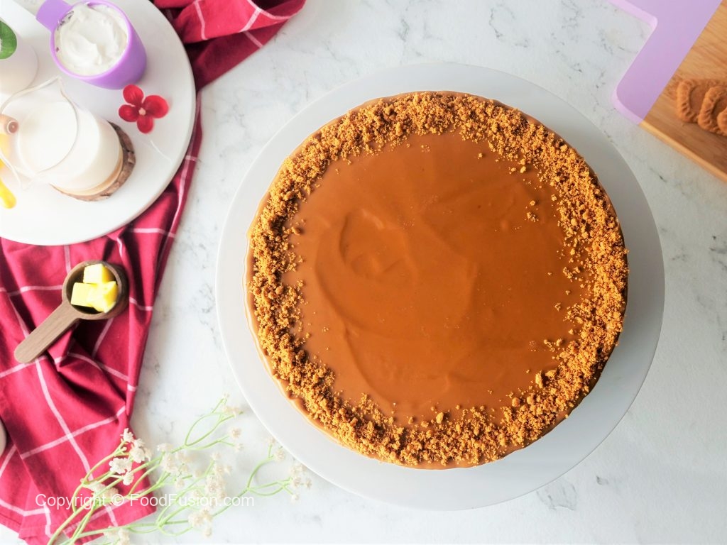 An amazing No Bake Lotus Cream Cheese Cake recipe which you can finally make at home. #HappyCookingToYou #FoodFusion #OlpersCream