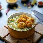 -In a serving dish,add green onion leaves,popcorn chicken & serve!