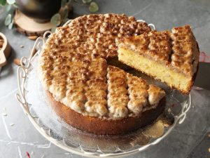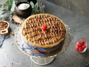 -Take out cake from oven and immediately apply warm honey on hot cake with the help of brush.