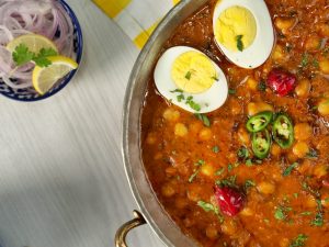 -Safed chanay (Chickpeas) 2 & ½ Cup (boiled with pink salt & turmeric powder)