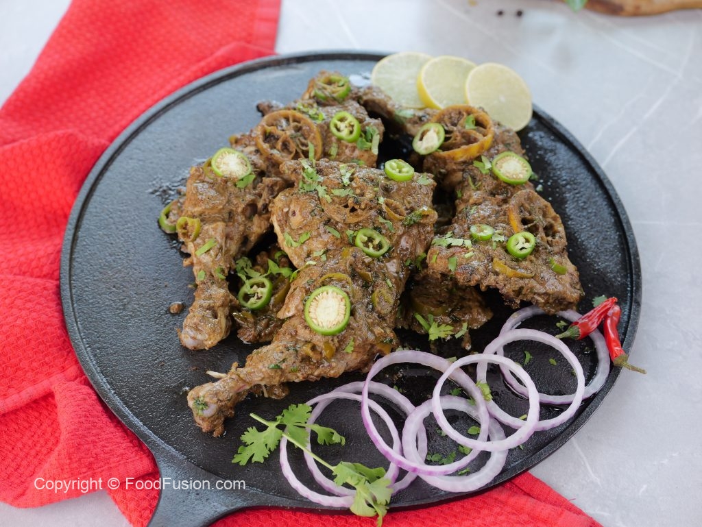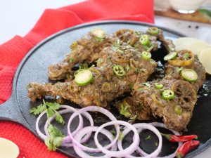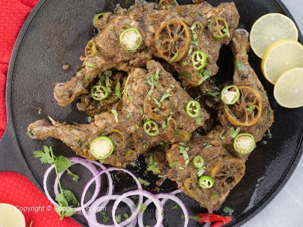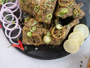 -Make deep cuts on both sides of chicken pieces,add ½ quantity of prepared marinade,coat well & marinate for 1-2 hours & reserve remaining marinade for later use.