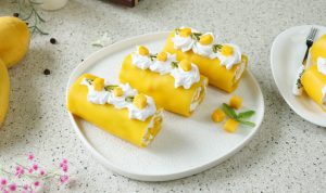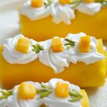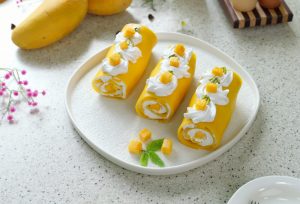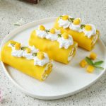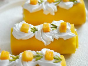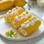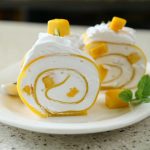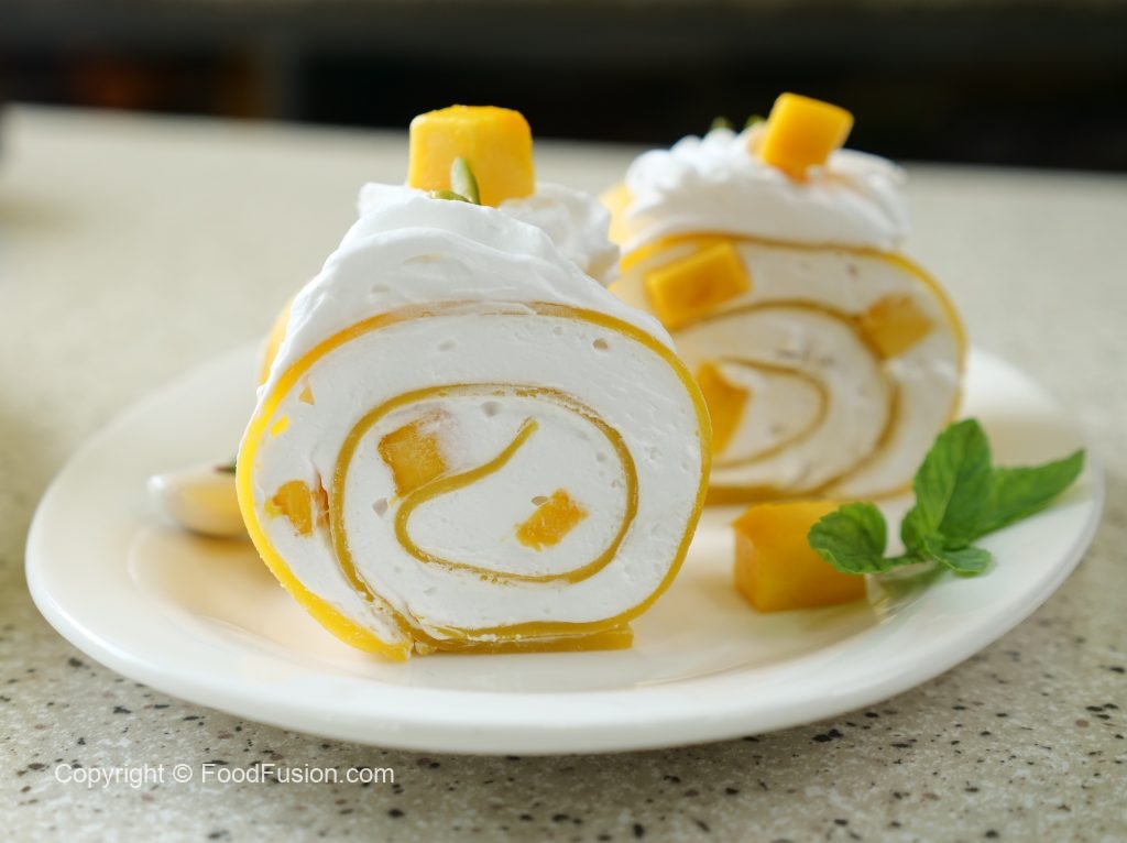 -Place mango chunks & roll up to make a swiss roll.