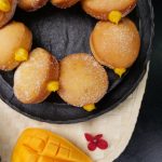 -Fit a piping bag,fill with prepared mango curd into each donut & serve! (Makes 10-12)