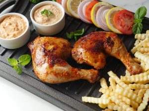 -In a bowl,add raw papaya paste,ginger garlic paste,green chilli paste,tomato paste,yogurt,lemon juice, kashmiri red chilli powder,chaat masala,red chilli powder,coriander seeds,turmeric powder,red chilli crushed,cumin seeds,pink salt & mix well.