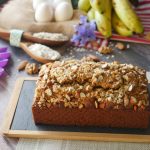 Pour prepared batter in greased loaf pan,sprinkle instant oats,almonds & walnuts.