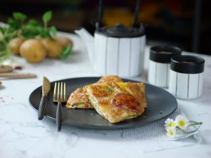 -Frying pan mein cooking oil,aloo,pink salt aur kali mirch crushed dal dein aur darmiyani ancch per golden ho janay tak fry ker lein (1 minute each side).