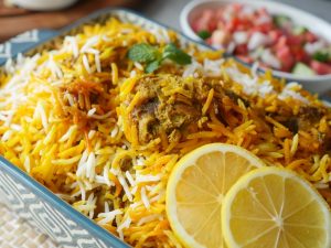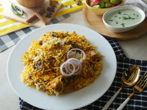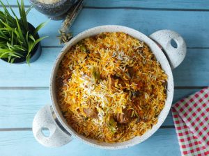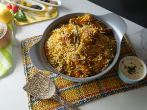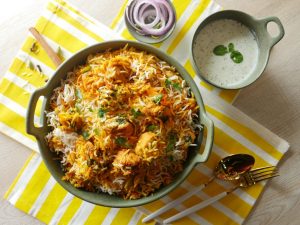 -Garnish with reserved carrots & raisins,fried almonds & serve with salad & raita!