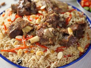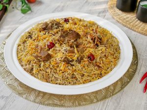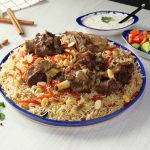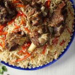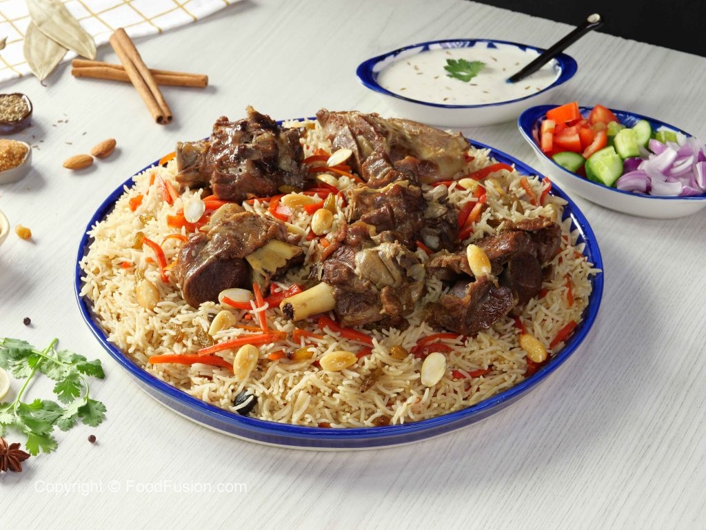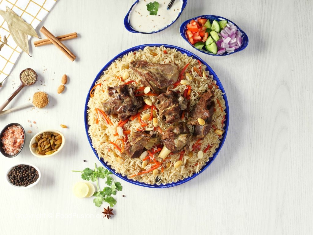 -Phir ismein carrots aur raisins (aadhe garnish ke liye rakh lein), aur cooked mutton pieces daal dein.
