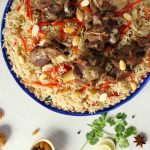 -Add carrots & raisins (reserve half for garnishing),cooked mutton pieces,cover & steam cook on low flame for 10-12 minutes.