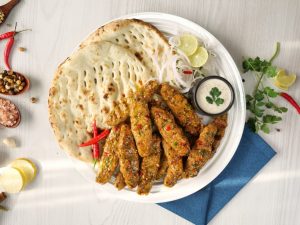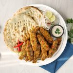-Apply prepared spicy butter on both sides of seekh kababs & continue cooking on grill+combination for 5-6 minutes or until kababs are done (makes 12-14).