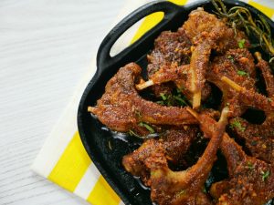 -Coat boiled mutton chops in prepared spice mix & set aside.