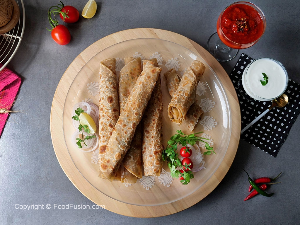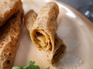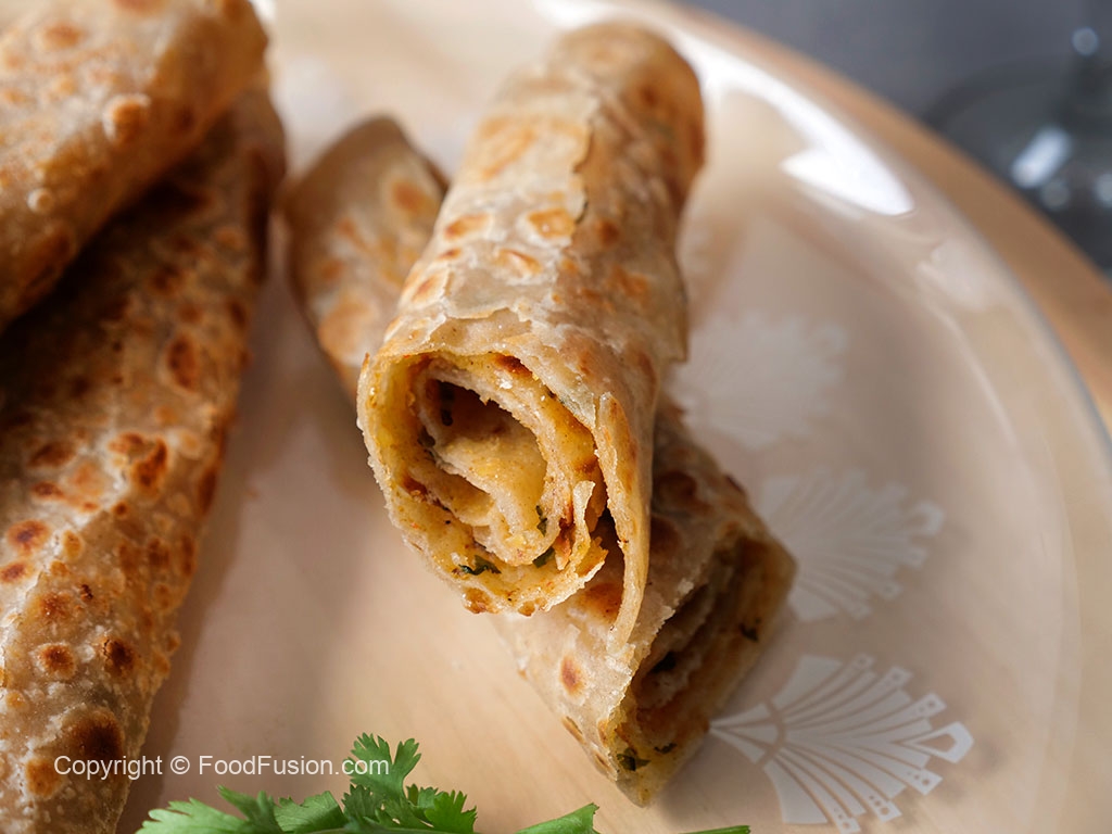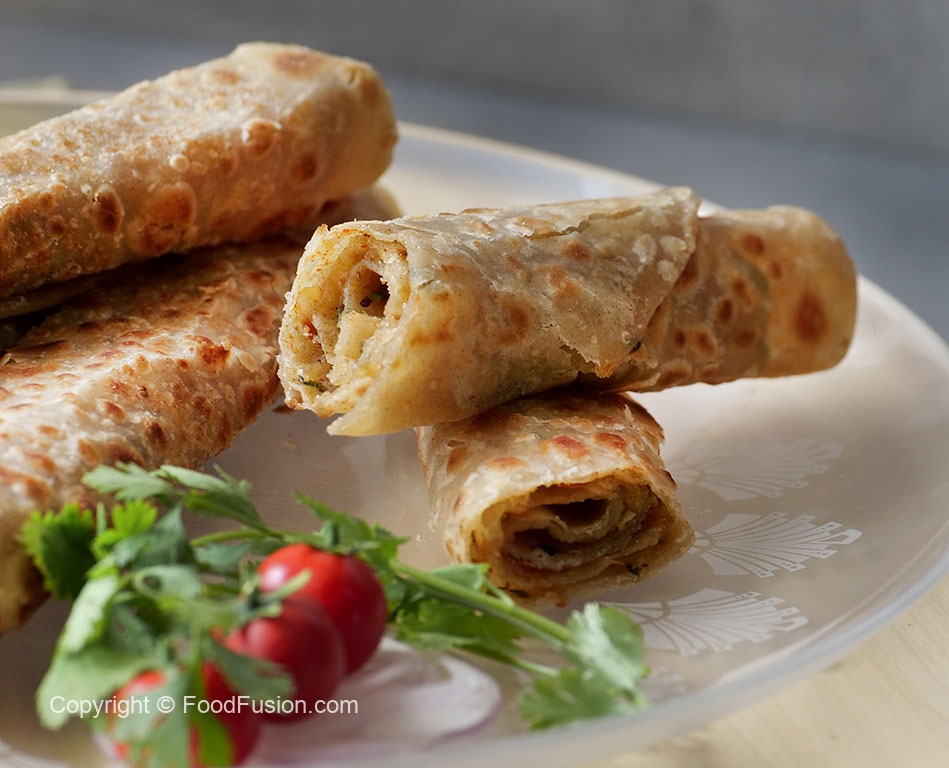 Ab paratha kid ono layers ko alag ker lein aur tong ki madad sa roll ker lein.