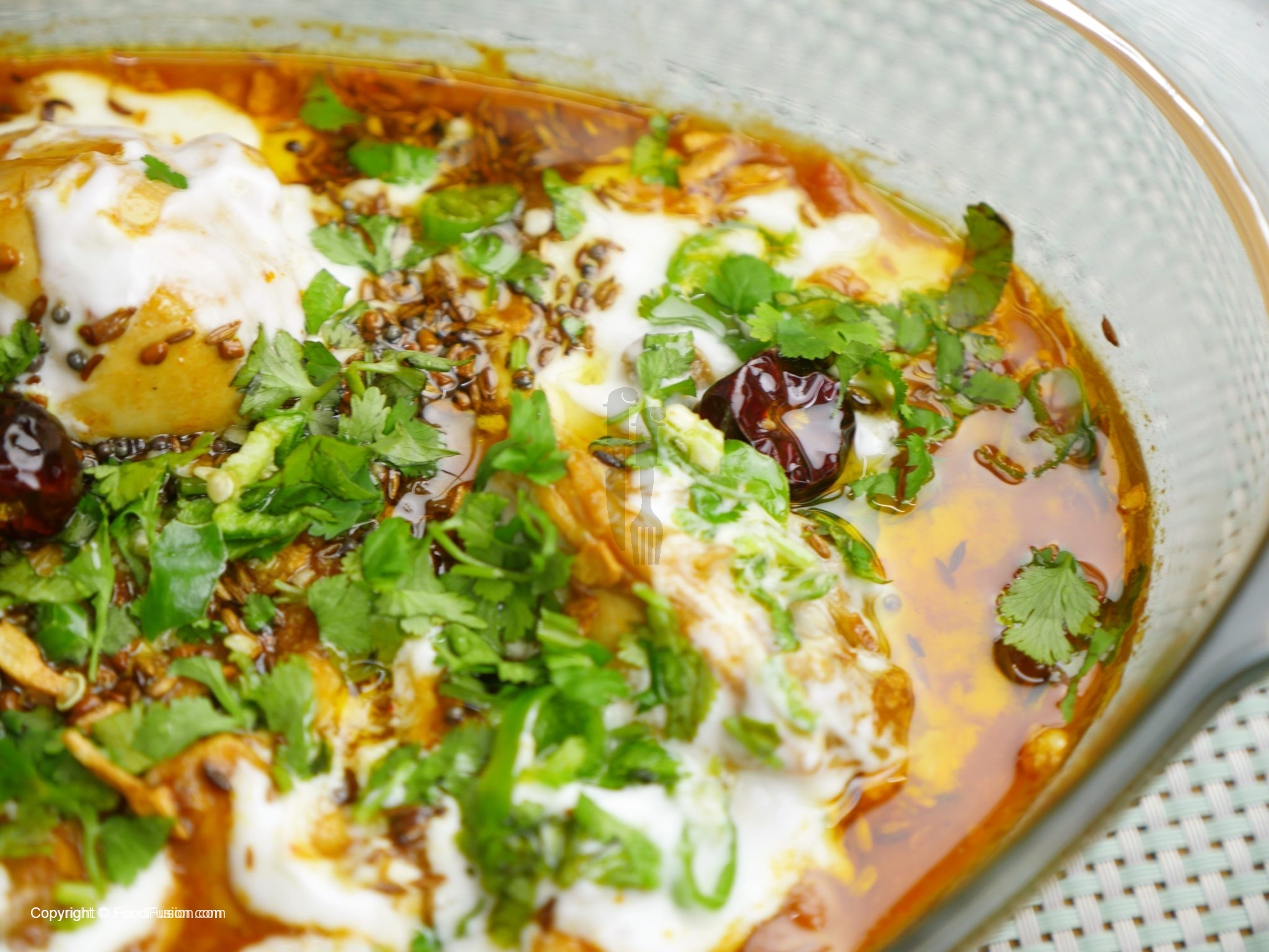 Serving dish mein nikal ker upper sa dahi dal dein.