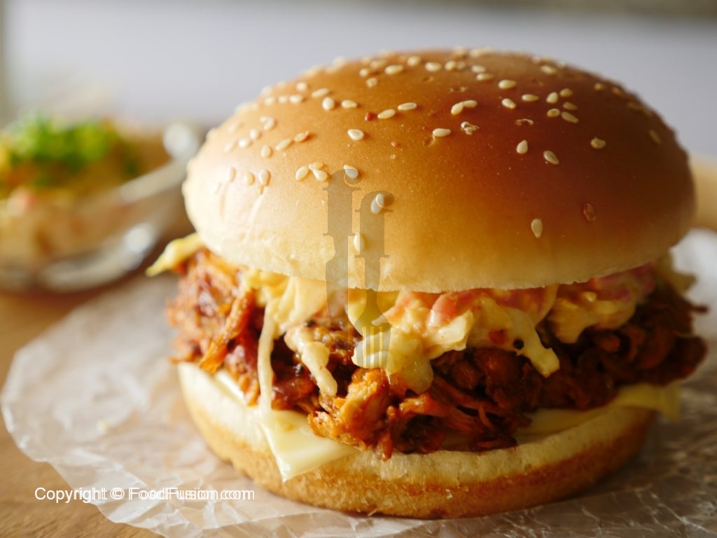Make this moutth wattering Pulled Chicken Burger at home and enjoy resturant quality taste. #HappyCookingToYou