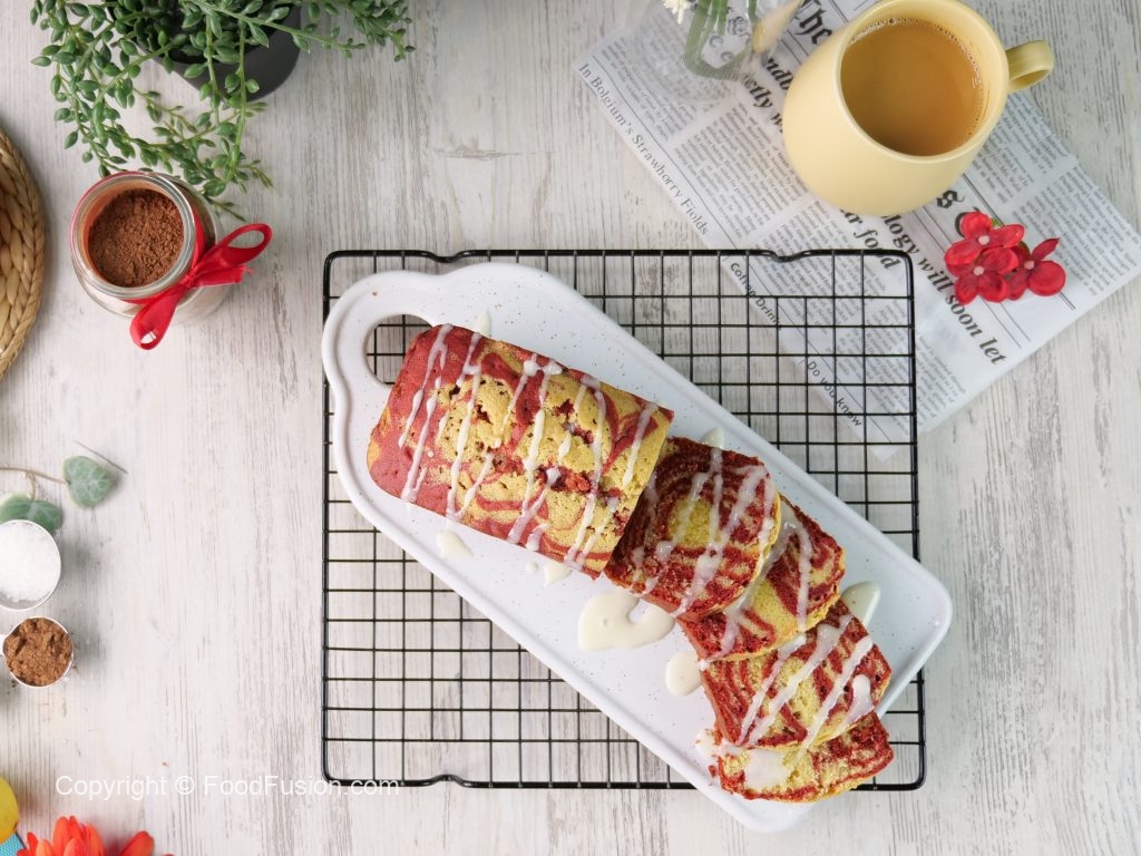 -Thanda ker lein (makes 2 red velvet marble cakes).