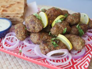 Stuffed chicken seekh kabab with prepared white sauce & set aside.