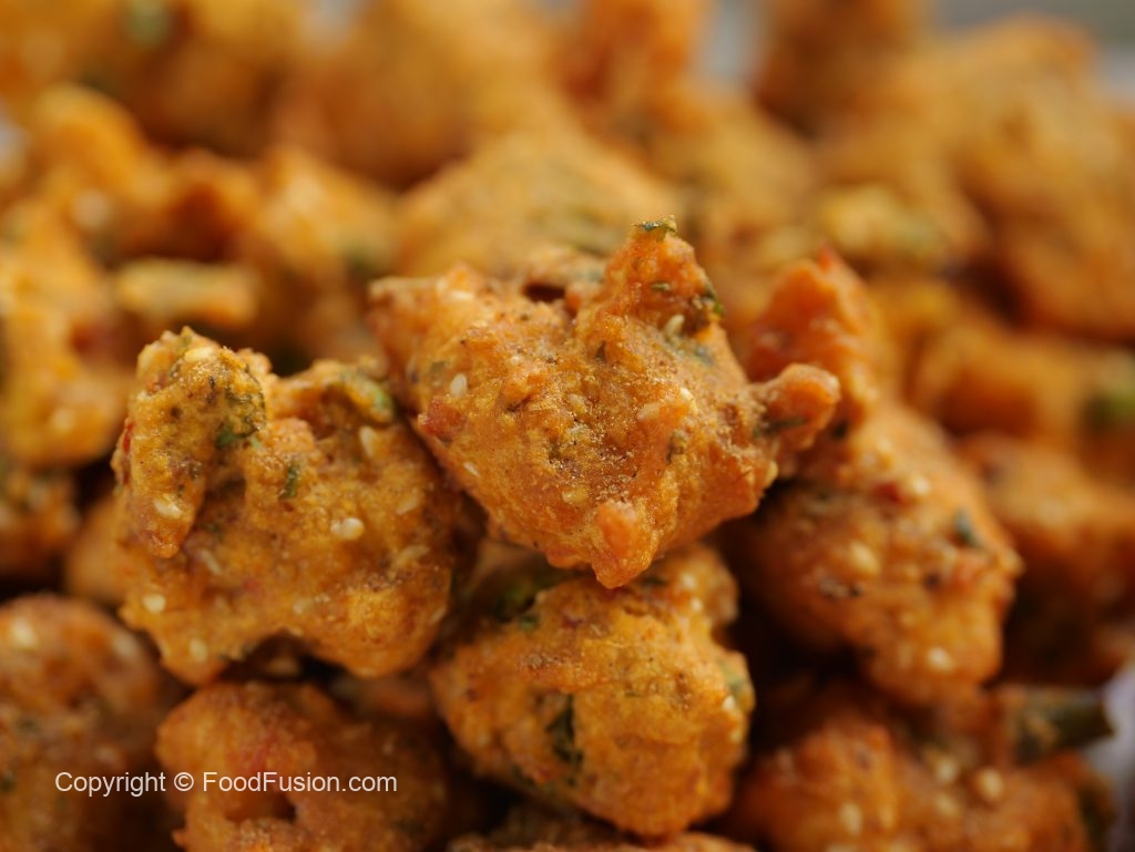 -Bowl mein chicken,pink salt,lal mirch crushed,sabut dhania,zeera,ajwain,lal mich powder,garam masala powder,lemon juice,zarda ka rang,baking soda,baisan,chawal ka atta,til,hara pyaz aur hara dhania dal dein.
