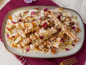 Dried rose petals sa garnish ker ka serve karein!