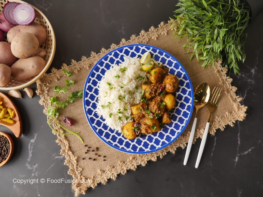 Add boiled potatoes & mix well,cover & cook on low flame for 7-8 minutes then cook on high flame until oil separates (2 minutes).