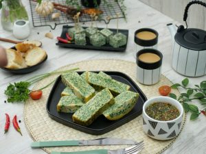 -In a jug,add eggs,salt,black pepper powder,cornflour,sesame olive & whisk well.