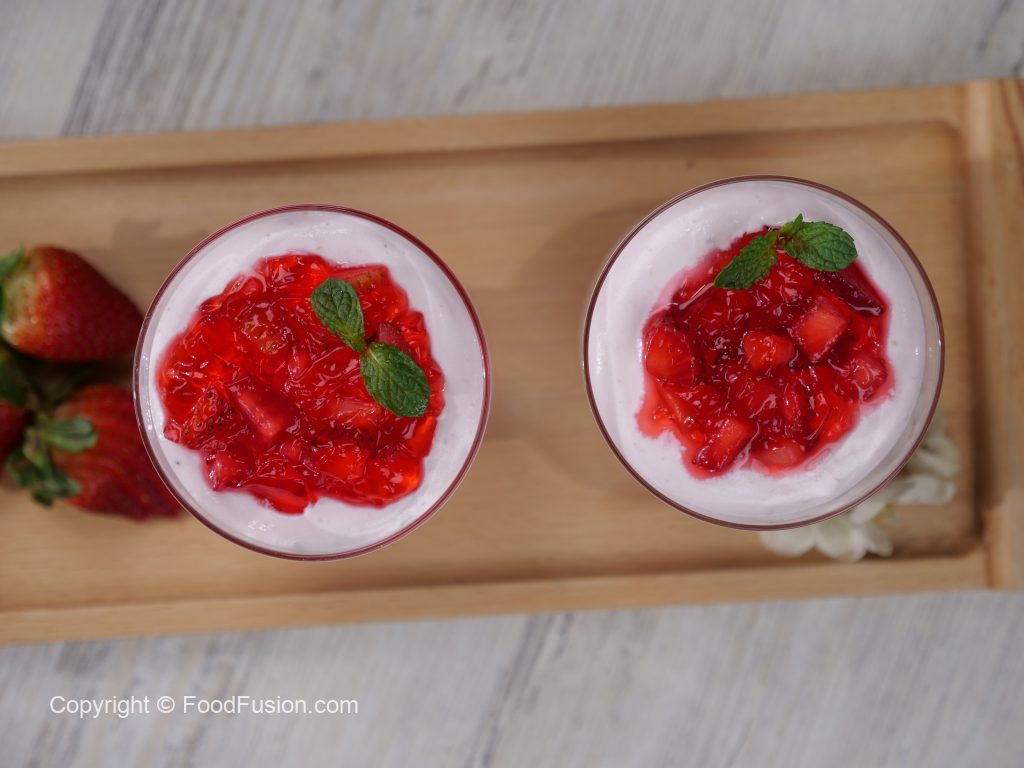 -In a blender jug,add strawberries & blend to make a puree (approx. 1 & ½ Cup) & set aside.
