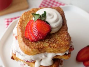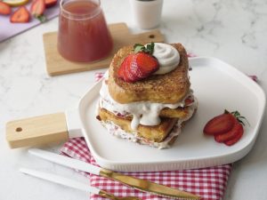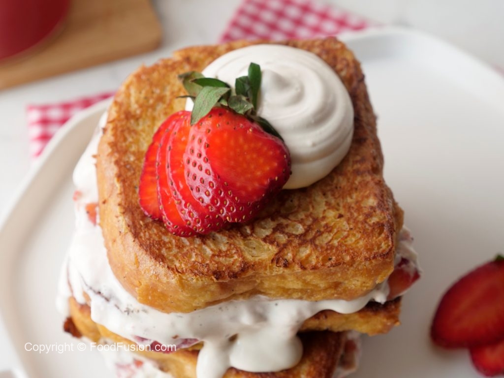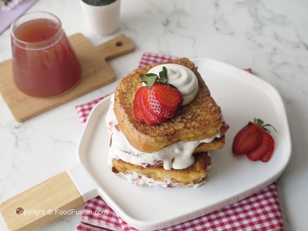 -Add 2 tbs of strawberry cream mixture & flip slice on another slice.
