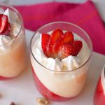 In serving glass,add prepared pistachio kheer enough to cover strawberry jelly and garnish with whipped cream & strawberry slices.