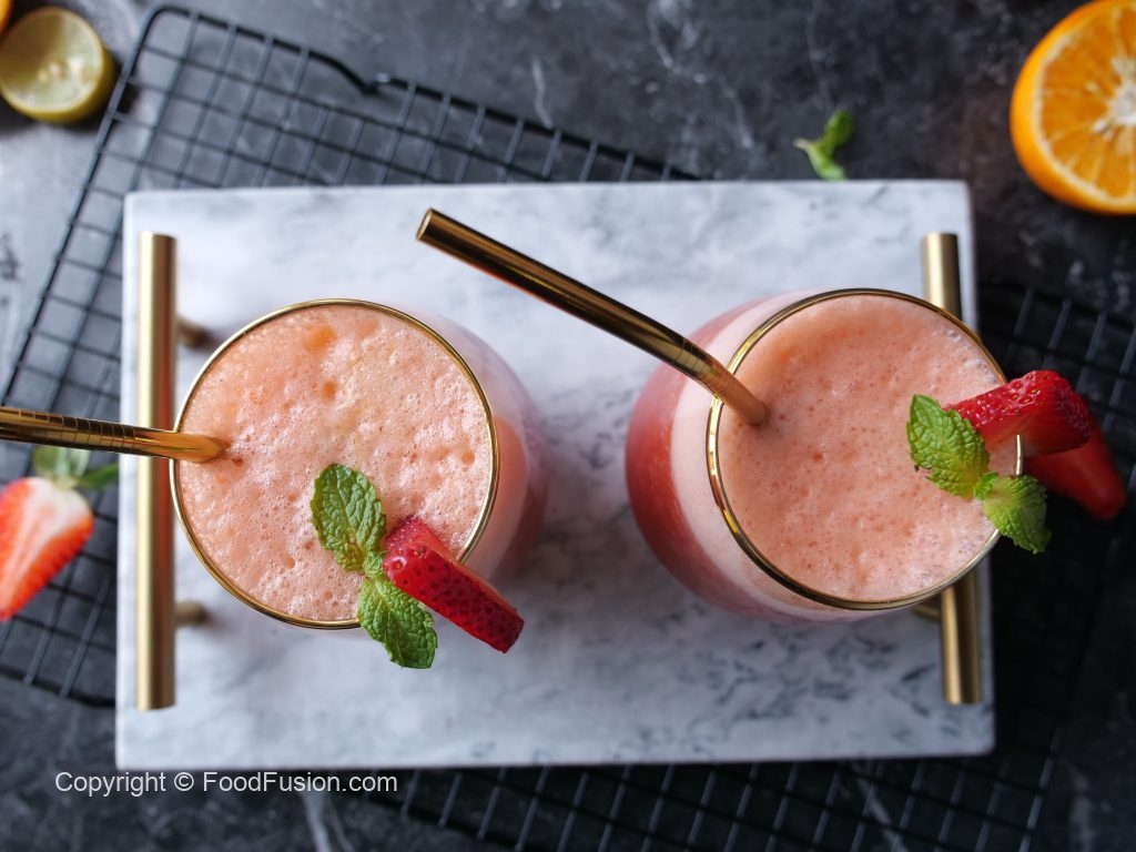 Quick easy and Refreshing Strawberry Orange Juice just like you get at restaurants. #HappyCookingToYou #FoodFusion