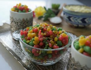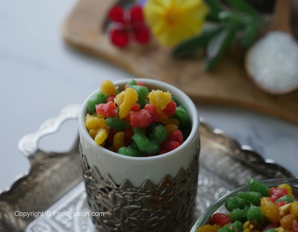 Yellow color,green color aur red color dal ker ache tarhan whisk karein & side per rakh dein.