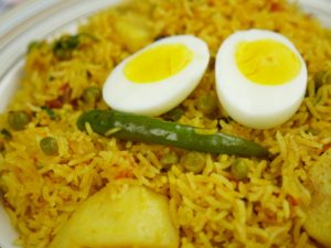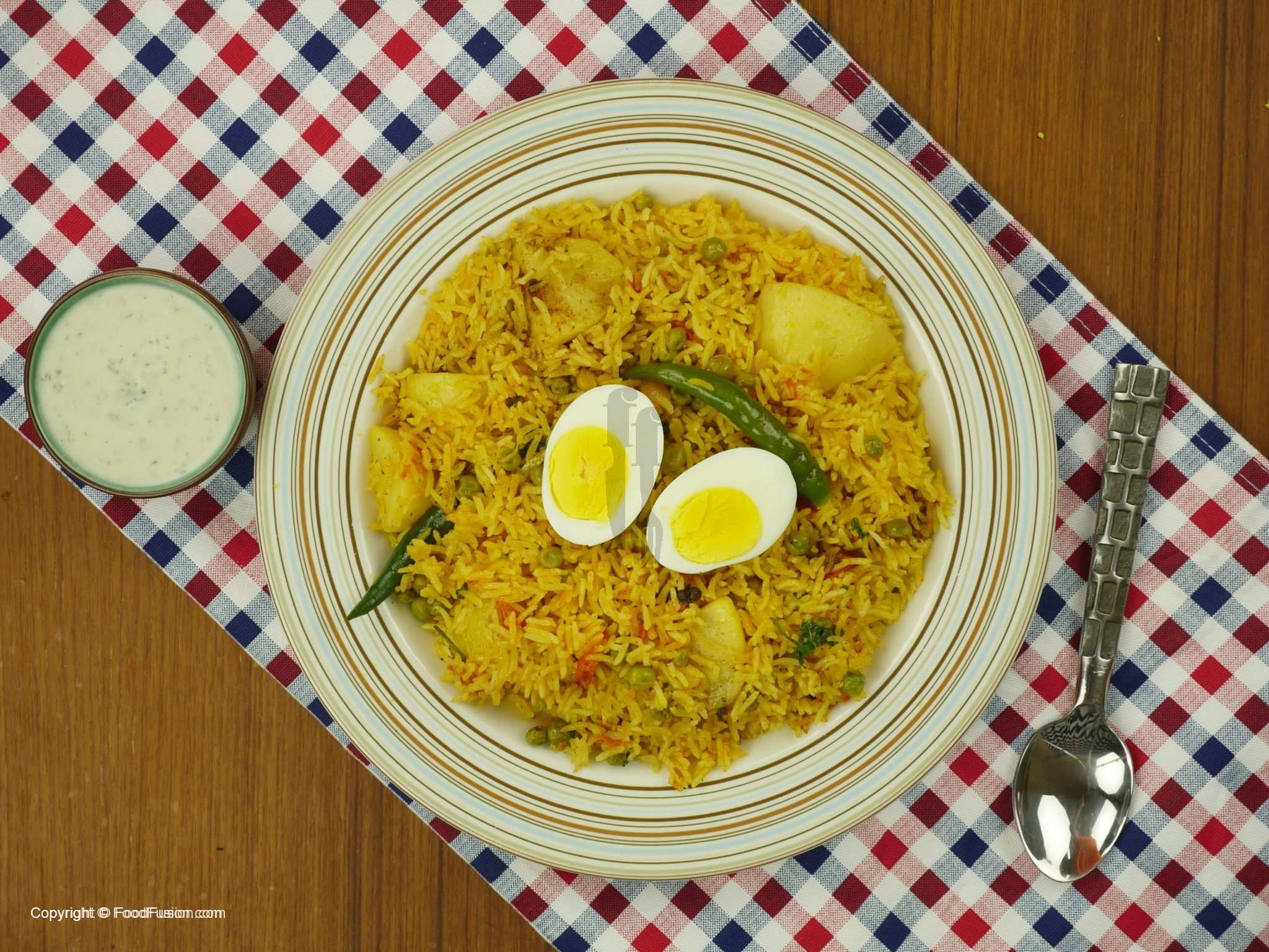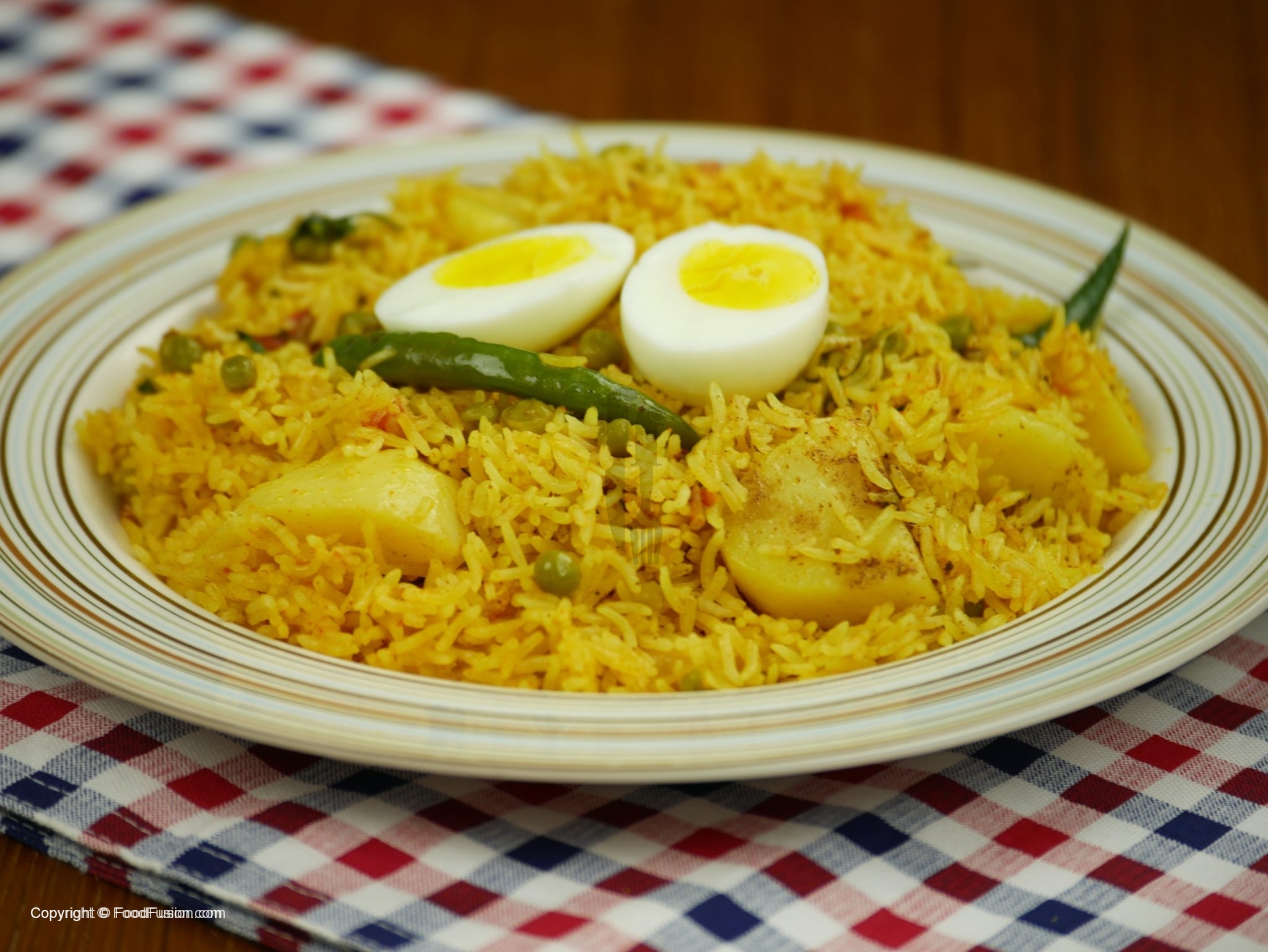 Add potatoes (half boiled) and green peas (half boiled),mix it and add water,bring it to boil.