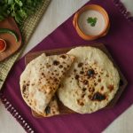 Heat griddle or iron pan. Place naan (wet side down) and cook on low flame until it starts to bubble and bottom has browned. Then flip griddle and cook other side directly on the flame until it turns brown or charred.