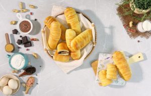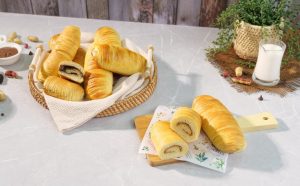 -Spread prepared garlic cheese filling or peanut butter or chocolate spread on the remaining half of the dough then roll out the dough & seal the sides carefully.