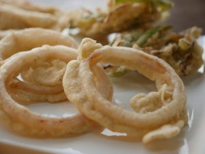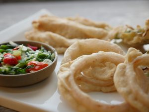 Pyaz ka rings ko tayyar batter mein dip ker lein.