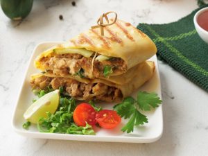 -Tortilla cone mein tayyar qeema filling bhar dein.