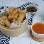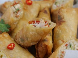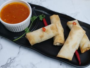 -Serve Thai spring rolls with Thai sweet chili & orange sauce.