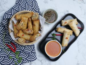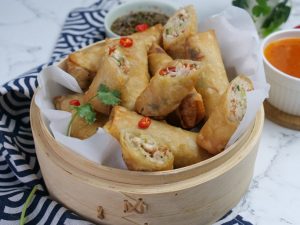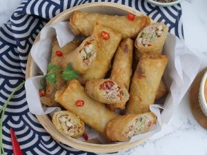 -Spray non-stick spray on thai spring rolls & air fry at 180 C for 6-8 minutes.