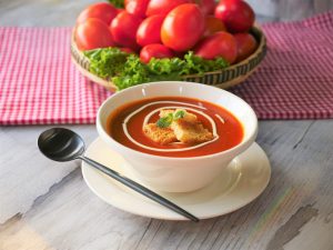 Apart from that Tomato soup is a great source of vitamin A, C and K, it also  contains calcium and antioxidants like carotenoid and lycopene. It is considered to be beneficial in improving skin, bones, cardiovascular, mental health.