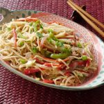 Add boiled spaghetti,white pepper powder,black pepper crushed,salt,chicken powder,soy sauce,hot sauce,vinegar and mix until well combined (1-2 minutes).