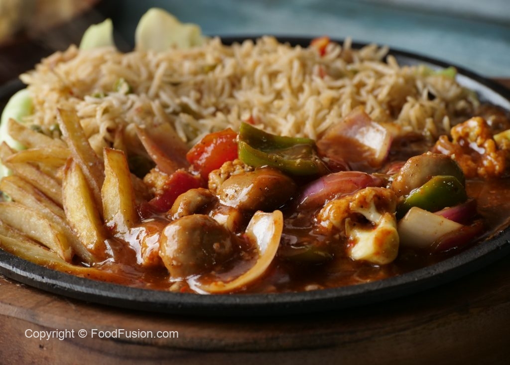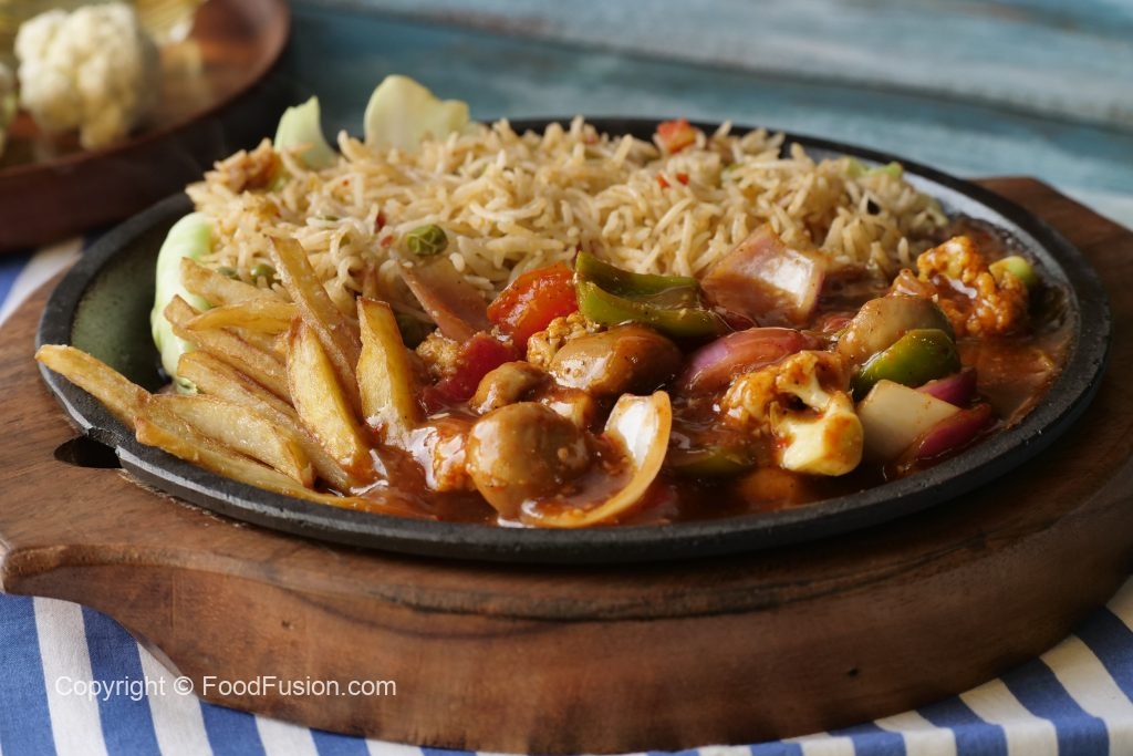 Makhan dal ker pheela lein,band gobhi leaves rakh ker upper sa fried rice,potato fried,stir-fried vegetables aur tayyar shashlik sauce dal ker serve karein!