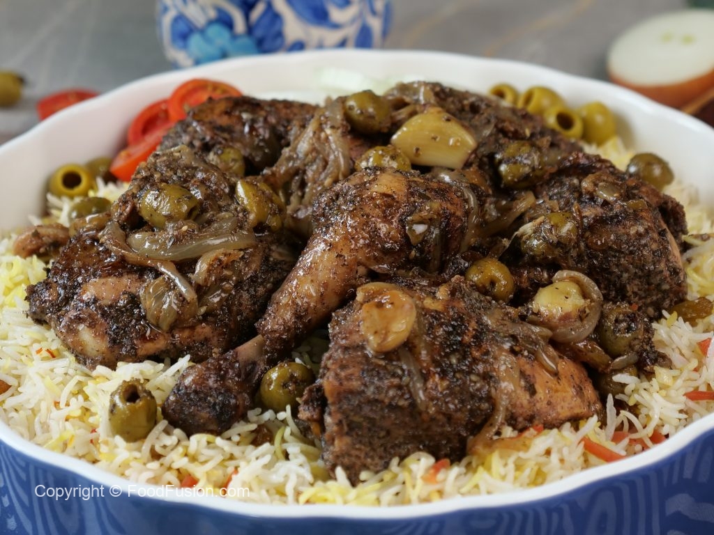 -Add marinated chicken,green olives,cover & cook on low flame until tender (30-35 minutes),turn sides in between & set aside.