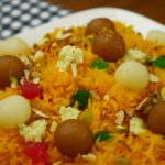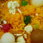 Zarda is ready, add gulab jamun and chum chum for garnishing.