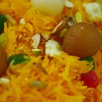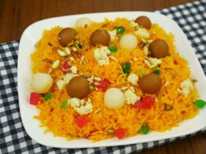 Zarda tayyar hai, gulab jamun aur cham cham sa garnish karein.